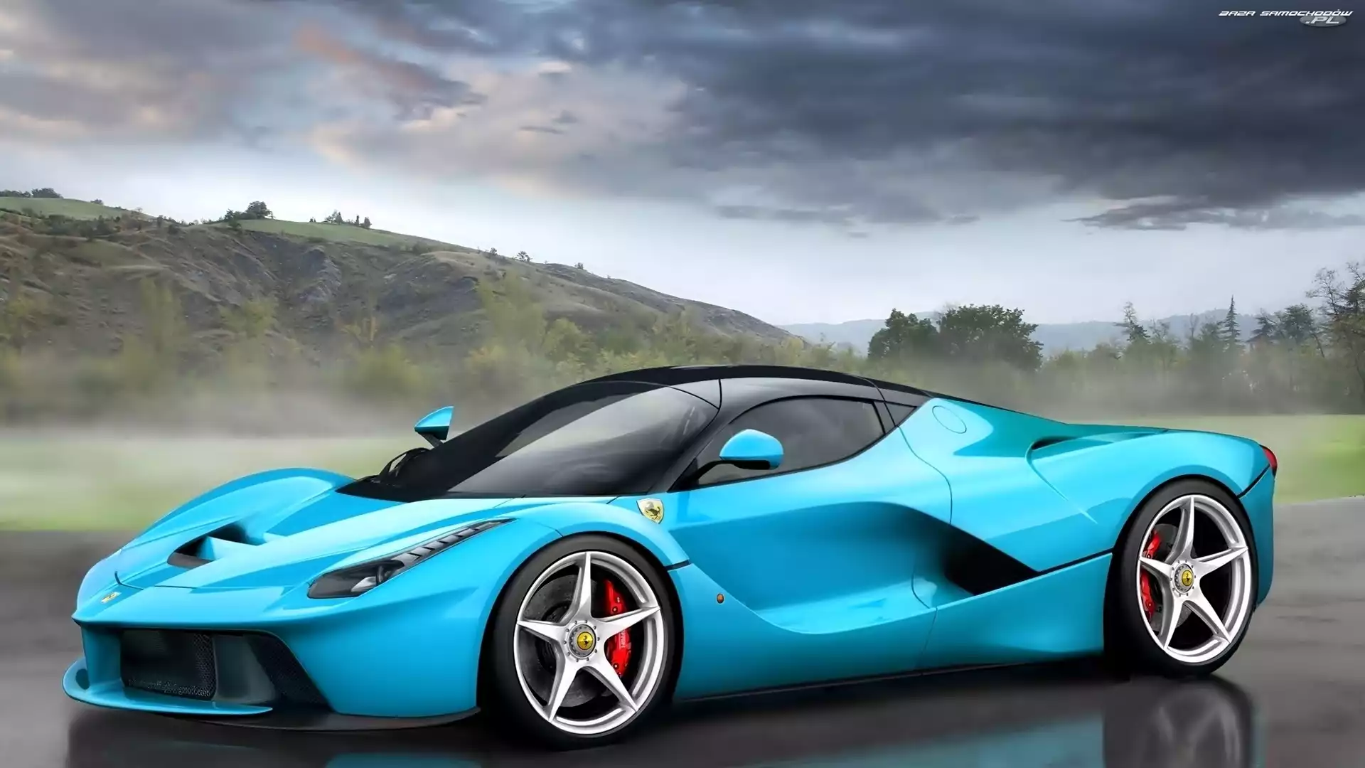 Samochód: Mgła, Wzgórza, Ferrari, Niebieskie, Enzo