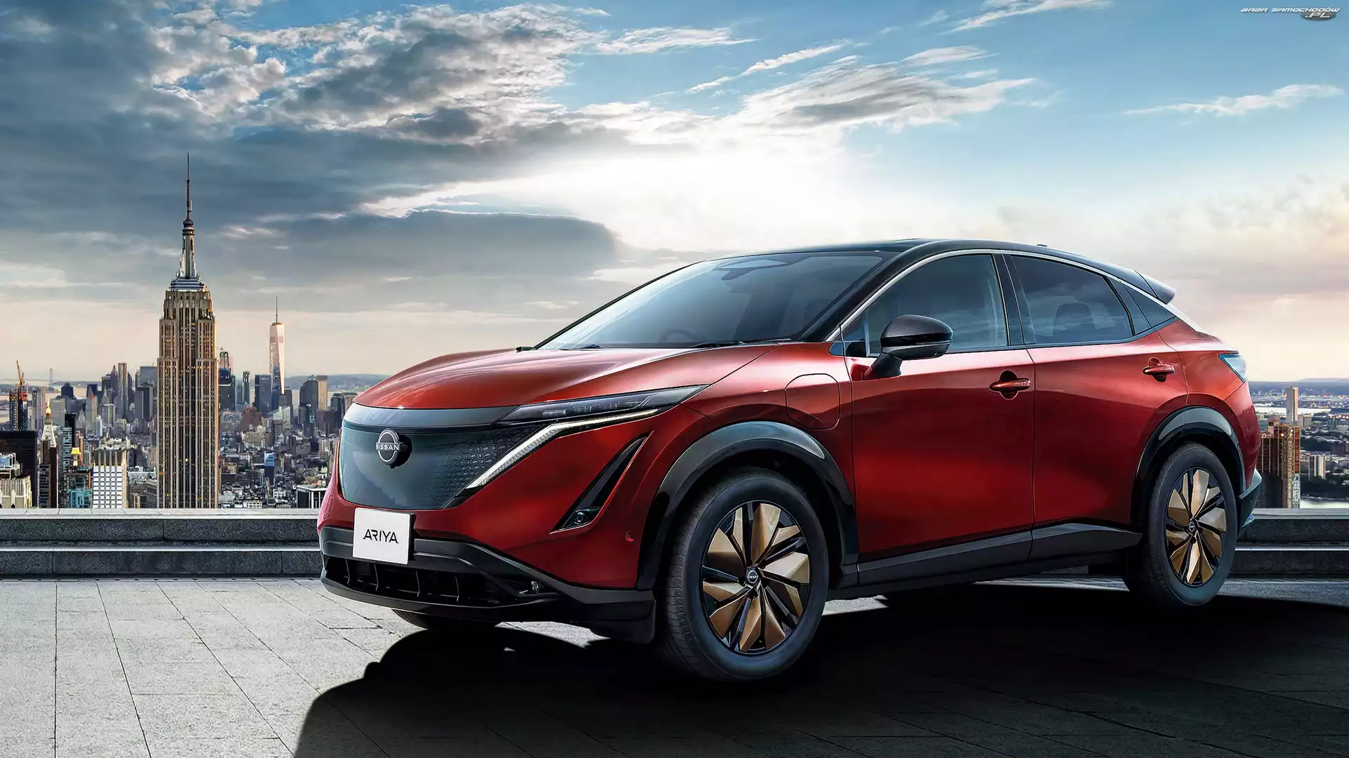 Czerwony, Nissan Ariya- Zdjęcia samochodów